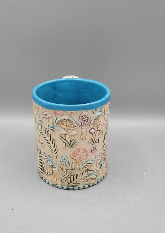 14-15 oz Hand Painted Embossed Mushroom Mug
