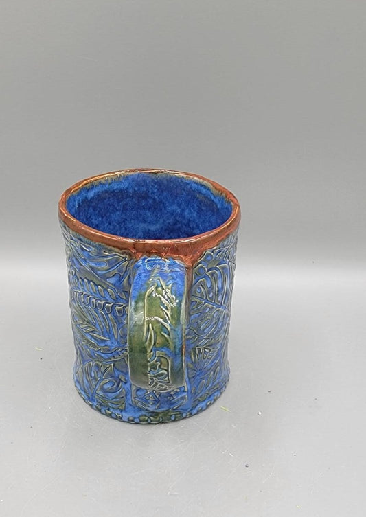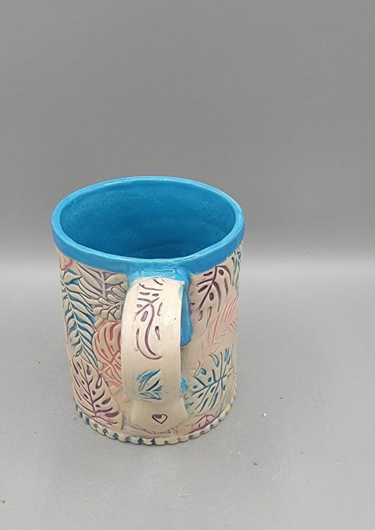 14-15 oz Hand Painted Embossed Monstera Mug