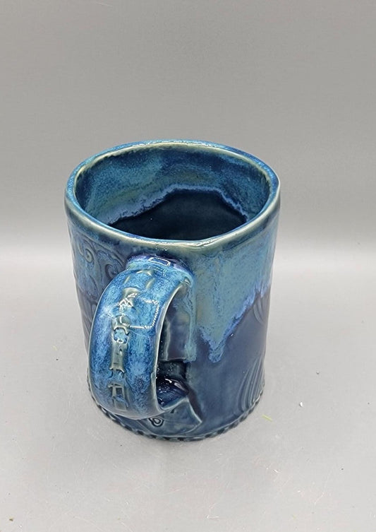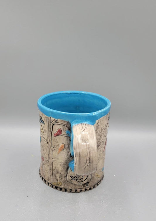 14-15oz Hand Painted, Embossed Birds in Forest Ceramic Mug