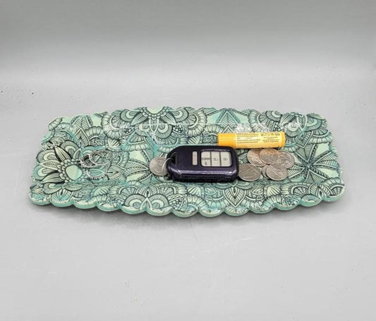 12.5x5.5 inch Large Mandala Double Compartment Platter in Mint