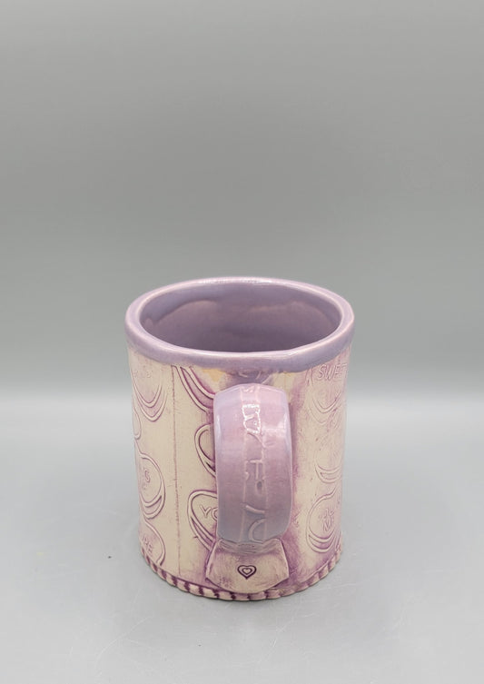 14-15oz Embossed Candy Song Hearts Ceramic Mug in Magenta Grape
