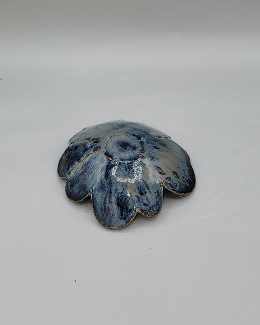 5 inch Flowered Shaped Circle Trinket Bowl in Midnight Skies