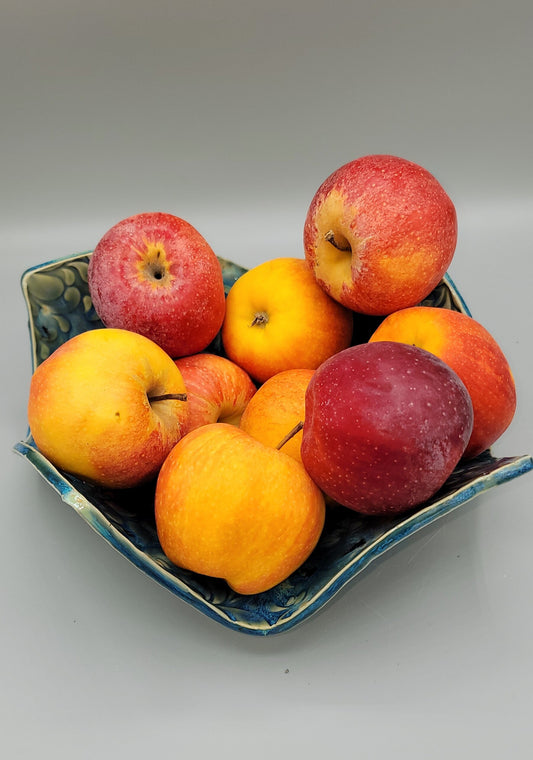 Every piece is handmade with stoneware, fired once in the kiln and then painted with glazes by myself before fired one more time in a kiln up to 2194°. With all that in mind, it makes every piece uniquely special since no two pieces will be exactly alike.