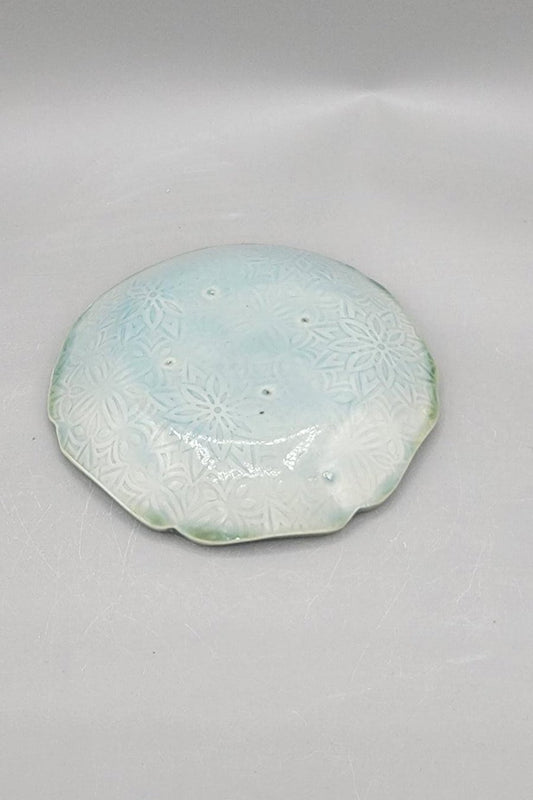 4 inch Embossed Dancing Daves Scalloped Triangle Trinket Dish Pistashio