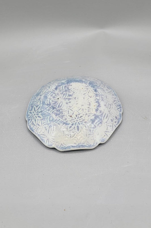 5 inch Embossed Dancer Scalloped Circle Trinket Dish in Royale