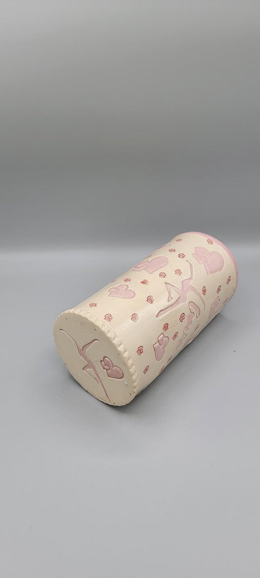 Hand Painted Imprinted Dancer and Love Ceramic Vase in Pretty Pink