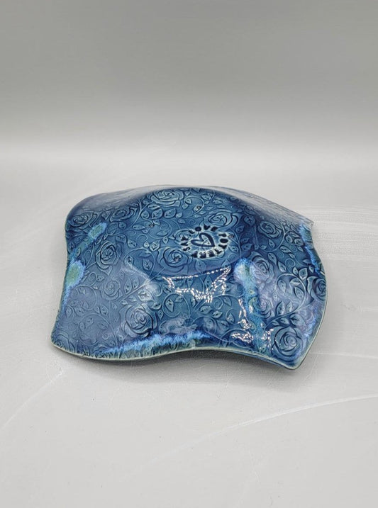 7 inch Embossed Roses Curvy Square Trinket Dish Blue Caribbean READ FULL DESCRIPTION