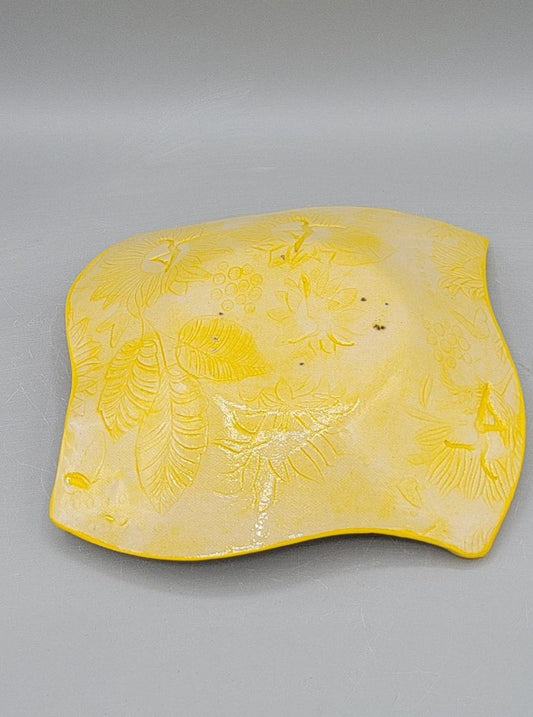 7 inch hand Painted Embossed Sunflowers with Dancers Curvy Square Trinket Dish #2