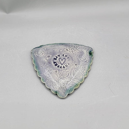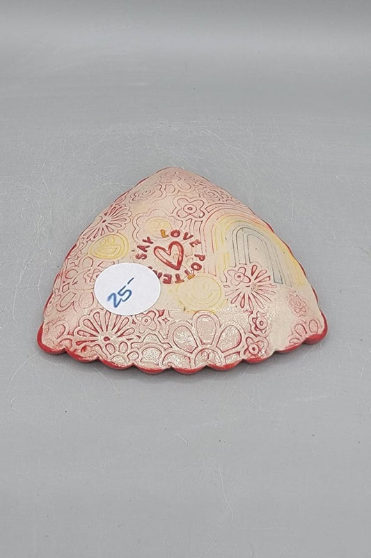 4 inch Say Love Embossed Peonies Scalloped Triangle Trinket Dish