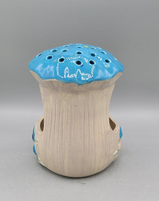 4 inch Embossed Mushrooms Scalloped Triangle Trinket Dish Floating Blue