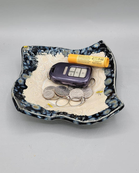 7 inch Embossed Dandelion Fluff Fancy Square Trinket Dish in Midnight Skies