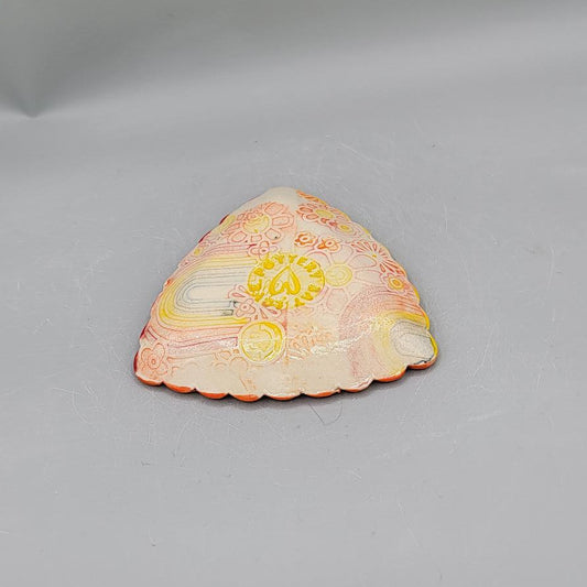 4 inch Hand Painted Suns Scalloped Triangle Trinket Dish With Rainbow Bottom