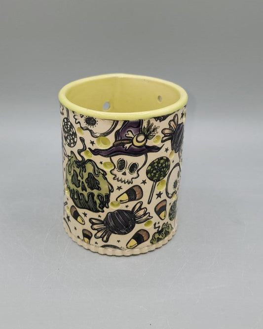 Every piece is handmade with stoneware, fired once in the kiln and then painted with glazes by myself before fired one more time in a kiln up to 2194°. With all that in mind, it makes every piece uniquely special since no two pieces will be exactly alike.